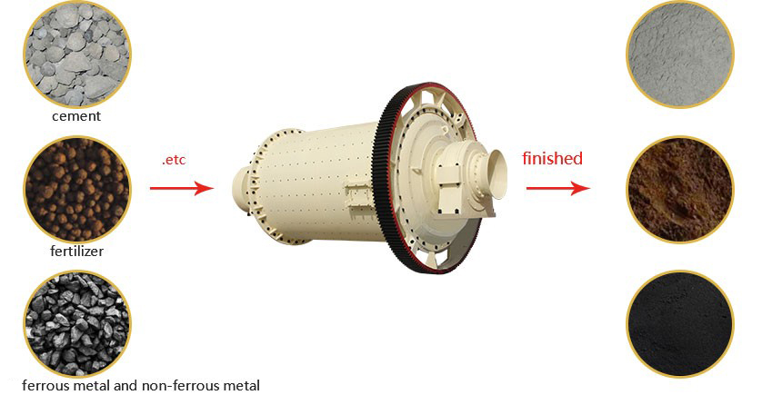 The quill shaft adopts cast steel part and the liner is detachable. The turning gearwheel adopts casting hobbling process and the drum is equipped with wear-resistant liner, which has good wear-resistance. The ball grinding mill is with stable and reliable working condition. Moreover, according to different materials and discharging methods, there are dry ball mills and wet ball mills for choice.